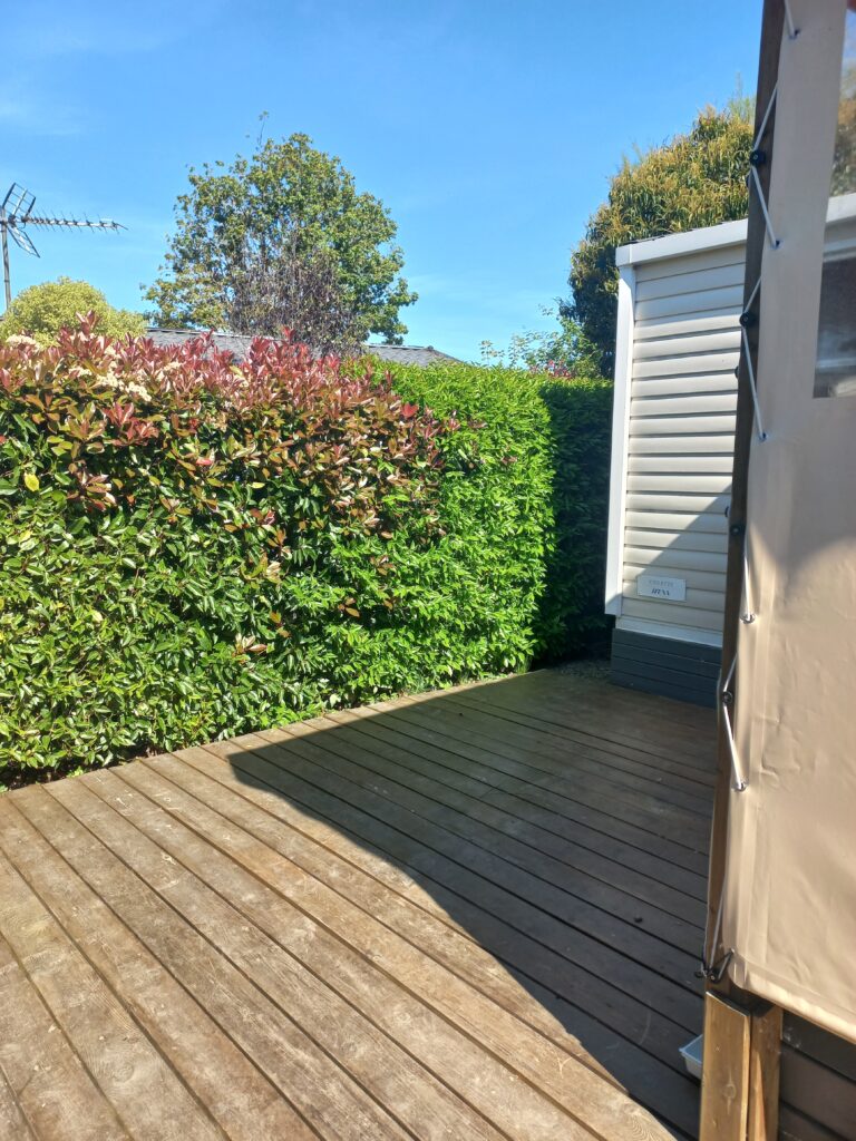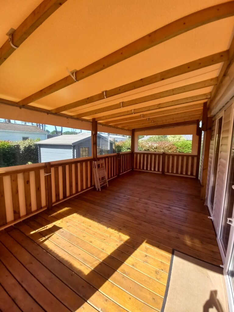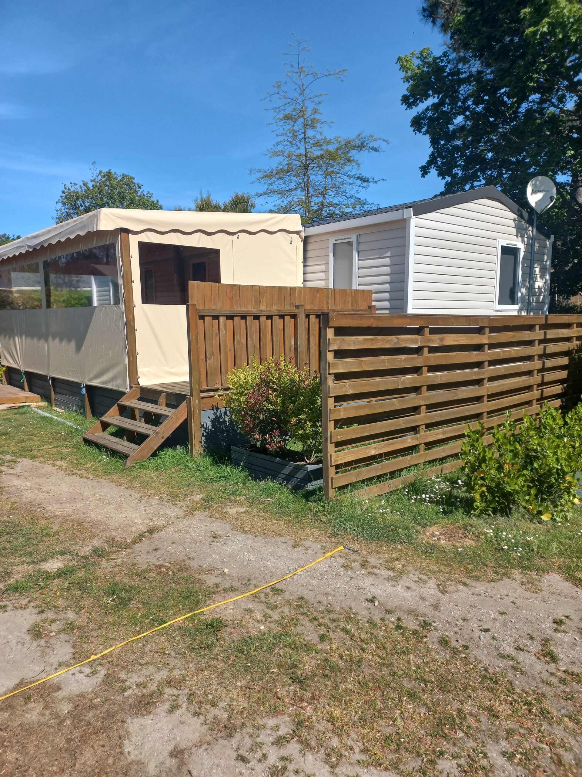 Mobil-home 45m2 de 2023, terrasse couvert 7,5x3m fermée sur 6m, cabanon de jardin 9m2, téléviseur +antenne.